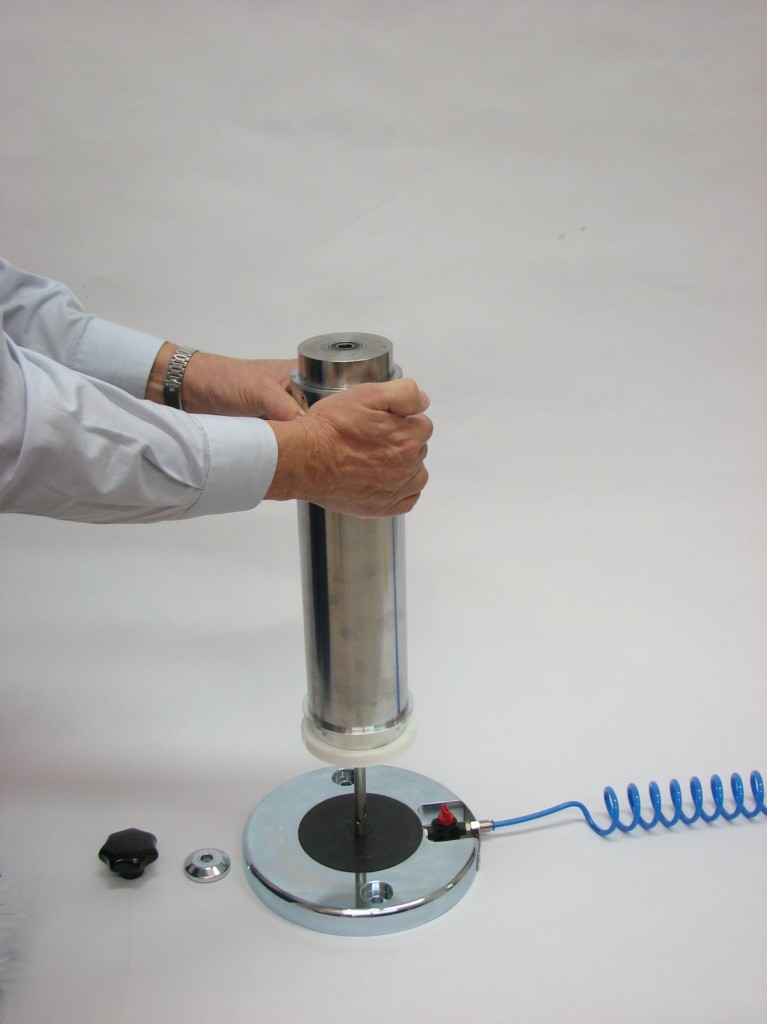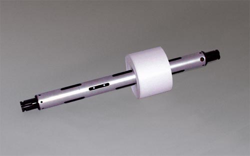 Pnevmatične vpenjalne gredi in vpenjalne glave napolnimo s stisnjenim zrakom, vgrajen ekspanzijski element ekspandira in pritisne na vpenjalne čeljusti, ki izstopijo iz telesa gredi in vpnejo tulec z zvitom papirja oziroma folije.